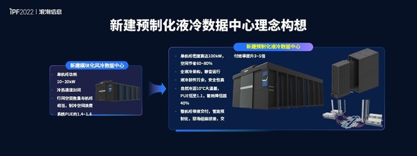 *對於傳統風冷老舊數據中心,浪潮數據中心提出風液式改造與液液式改造兩種模式。*針對客户室外側水冷無法部署,機房改動困難的情況,風液式改造可以實現系統“0改動,液冷化” ,讓客户更快更直接的使用液冷設備。對於液液式改造,在儘可能實現原有風冷室內空調復、機櫃複用、室外冷源複用的前提下,新增液冷系統部件及高功耗配電,用最小的系統改動,實現液冷的性能優勢最大化。