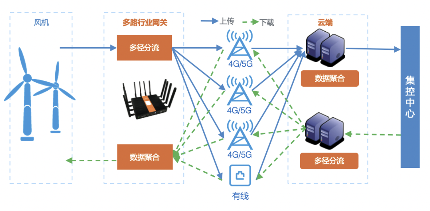 數據是智慧風電的核心要素,只有基於即時、有效的風電機組和環境數據,風力發電廠才能精準地預測發電量、減少電網波動、提升智慧運維水平。然而,風電場通常坐落於人跡罕至的偏遠野外,特別是在無專用光纜、分散式部署的風電機組場景中,風機輔助系統只能靠無線網絡傳輸數據,極易受風向變化、風機槳葉阻擋、惡劣天氣等因素影響而不能聯網,智慧風電遲遲無法全面鋪開。