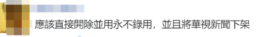 對於陳雅琳自行請辭代總經理被“立刻慰留”,有島內網友建議:應該直接開除並永不錄用,並且將華視新聞下架。↓