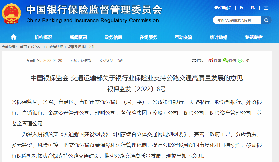 兩部門發文,鼓勵銀行保險機構支持公路交通建設