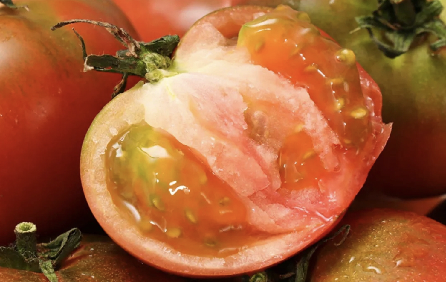 據瞭解,草莓西紅柿最早是東北一帶的傳統品種,後經日本改良流入中國後,經過特殊栽培而形成的新品種。因為其底部有一圈綠紋,看起來像草莓;切開後,裏頭瓤的模樣也和草莓有幾分相似,味道比普通西紅柿甜度要高三分之一左右,不過草莓西紅柿並沒有草莓味兒,咬開也沒有草莓。因其又名“綠腚西紅柿”,也被網友戲稱“綠碼預定”。