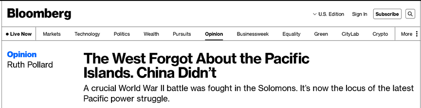 “西方忘記了太平洋島國,但中國沒有”,美國彭博社在4月20日的一篇評論文章中用這句話做了標題。