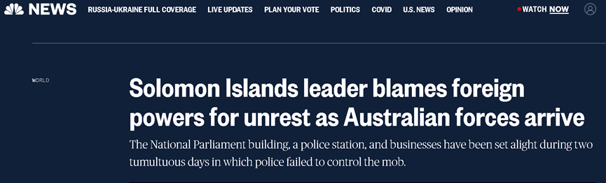 實際上,美國以及澳大利亞在煽動所羅門羣島的內亂、顛覆該國政權乃至派兵對該國進行“軍事幹預”上也有着“成熟的經驗”。