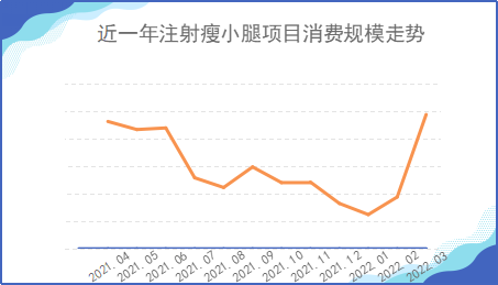 據醫美查統計,從支付人數上看,相較於今年2月,注射瘦小腿項目環比增長了147%,注射瘦臉為36.22%;與此同時,注射瘦小腿的訂單量環比增幅達到了151.04%,受此影響該項目的消費規模環比增長158.85%。