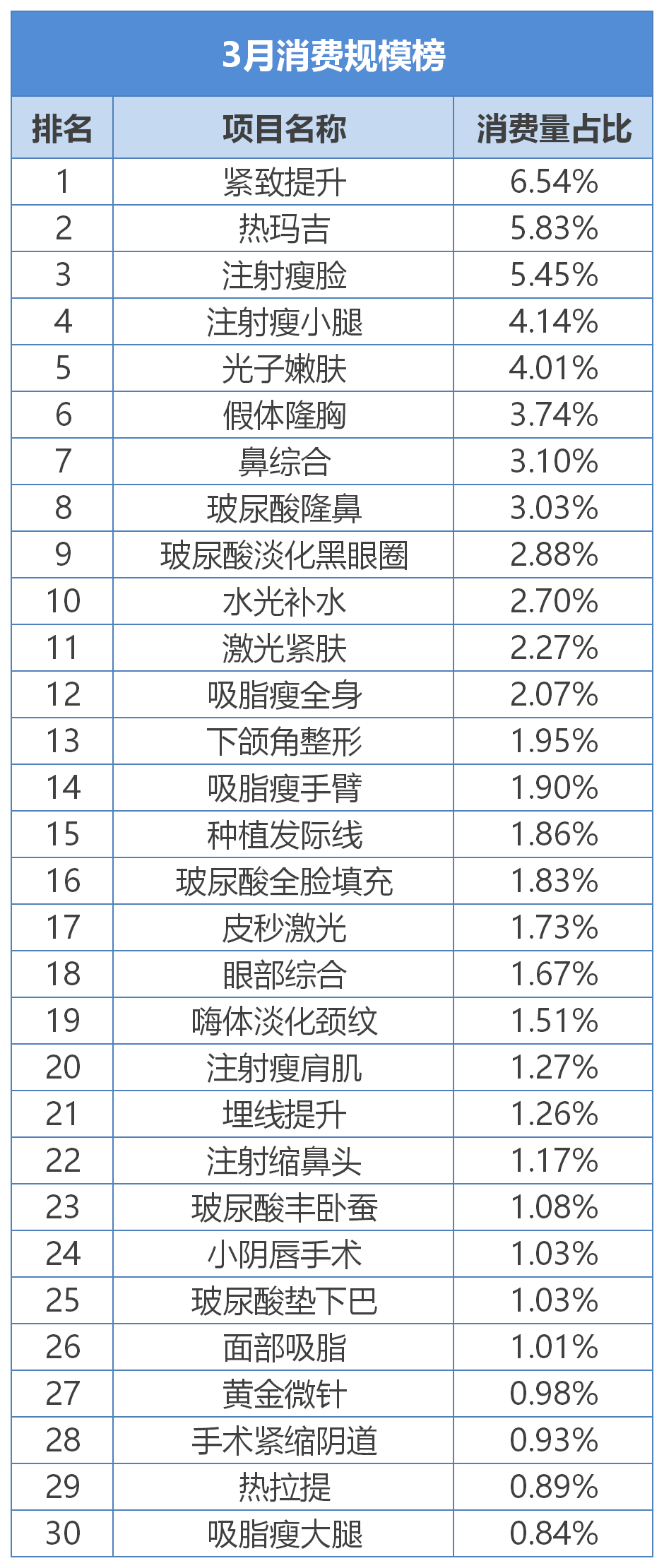醫美查發佈3月醫美消費趨勢報告:緊緻提升消費規模同比增長587.99%