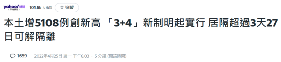 另據台灣“雅虎新聞網”報道,島內新增本土確診病例不斷創新高,台流行疫情指揮中心今天分別於上午及下午舉行縣市長會議及專家會議,討論島內本土病例接觸者匡列居家隔離天數縮短“3+4”方案。
