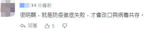 對於民進黨當局決定縮短居家隔離時間,有不少島內網友表示質疑,有網友直言,“很明顯,就是防疫徹底失敗,才會開口與疫情共存”。↓