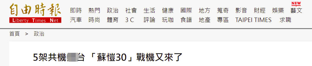 綠媒炒作:5架次解放軍軍機進入台西南空域,“蘇-30戰機又來了”