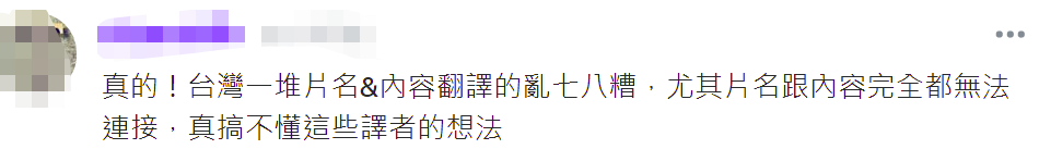 也有網友透露,台灣有不少影片片名、內容翻譯得亂七八糟,搞不懂這些譯者的想法。↓