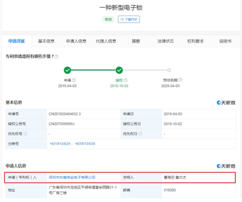 但公開信息卻顯示,東南電子信息披露或存在重大遺漏。首先,東南電子研發中心主任魯文傑2018年以發明人的身份為深圳市東南偉業電子有限公司申請專利,專利名為一種新型電子鎖。由此可見,魯文傑任期內在經銷商企業任職;其次,招股書披露,一種具有安全性電磁鎖止的技術是發行人的核心技術,該技術應用於電子鎖。而魯文傑為深圳東南申請的專利一種新型電子鎖與發行人核心技術存在相似。另外,林應輝也作為發明人參與了深圳東南的多項發明申請。東南電子研發中心主任,前副總經理為何要為經銷商申請專利?這是否會影響公司技術的獨立性?