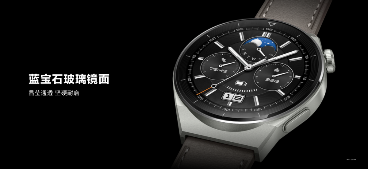 華為WATCH GT 3 Pro鈦金屬款採用鈦金屬錶殼、藍寶石玻璃鏡面以及陶瓷後殼等高端材質,整體厚度相比上一代減少0.5mm,2.5D弧面設計過渡更自然。