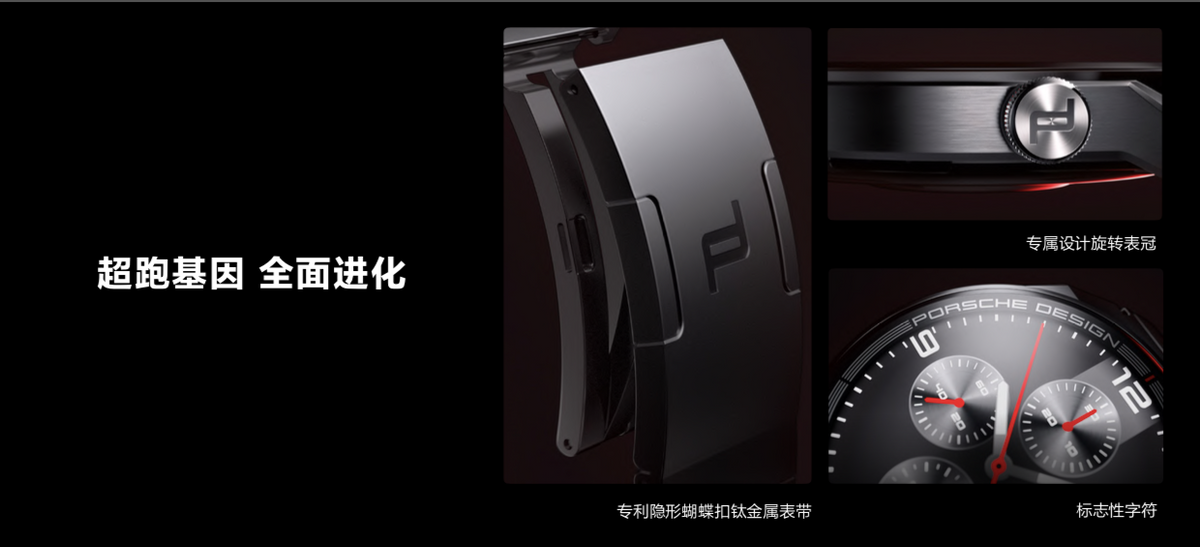 華為WATCH GT 3保時捷設計秉承保時捷設計基因和奢華氣質設計理念,將經典儀表盤紅黑元素融入旋轉錶冠與藍寶石玻璃鏡面刻度,還配有保時捷設計錶盤。