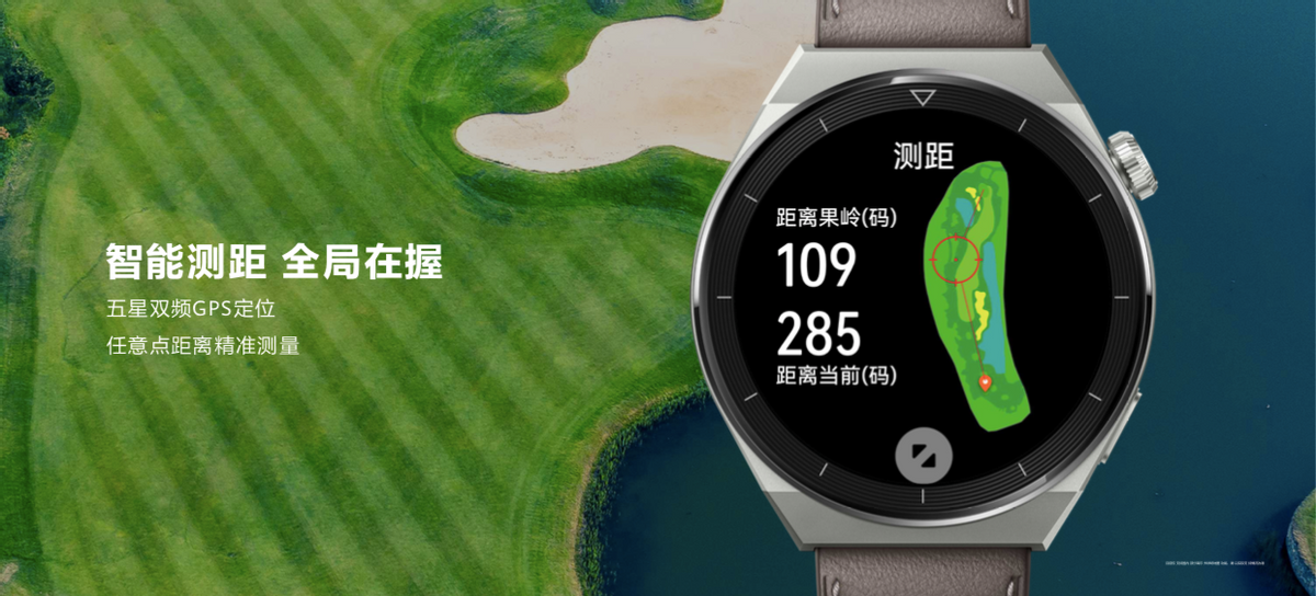 華為WATCH GT 3 Pro系列還新增了高爾夫球場運動模式,搭載國內300+高爾夫球場地圖,提供完整的球道、果嶺和障礙區分佈的視圖,精準的GPS定位能夠即時展示用户當前位置到達果嶺前沿、中心和後沿的距離。根據用户即時位置,手錶提供到達障礙物前沿和後沿的距離信息,為用户避免將球打入障礙區域提供幫助,自定義測距能力則可展示當前即時位置到達球道任意區域的距離信息,讓用户隨意掌控球局。球場模式還提供電子記分卡功能,支持風速風向、果嶺指向和果嶺坡度熱力圖等信息,為用户制定擊球策略提供多項數據支撐。