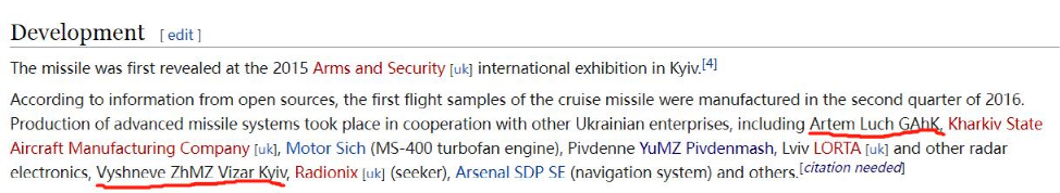 老劉先去查找了維基解密對“海王星”導彈的介紹:該導彈的設計單位是烏克蘭盧奇設計局,那該型導彈的生產單位是誰呢?