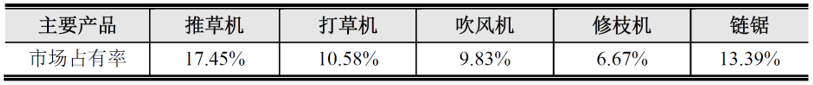 根據TraQline市場研究數據以及發行人終端銷售量合理估算,發行人2019年(2019年7月1日至2020年6月30日)生產的主要產品北美市場佔有率普遍都在10%以上,具體數據如下: