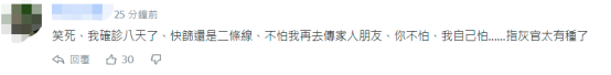 還有疑似是確診病例的島內網友稱,“笑死,我確診八天了,快篩還是‘二條線’(陽性),不怕我再去傳家人朋友。你不怕,我自己怕……指灰官(值陳時中)太有種了”。↓