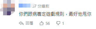 針對陳時中今天宣佈5月8日起放寬確診病例的解除隔離標準,有不少島內網友表示質疑,有網友就諷刺,“你們跟病毒定遊戲規則,最好他(指病毒)甩你”。↓