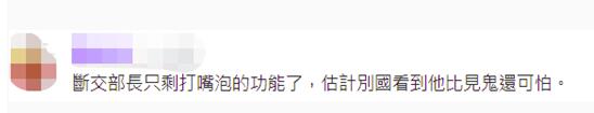 有網友諷刺吳釗燮:“‘斷交部長’只剩打嘴炮的功能了,估計別國看到他比見鬼還可怕。”↓