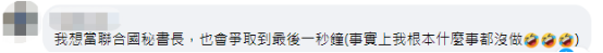 “我想當聯合國秘書長,也會爭取到最後一秒鐘(事實上我根本什麼事都沒做)。”有網友寫道。↓