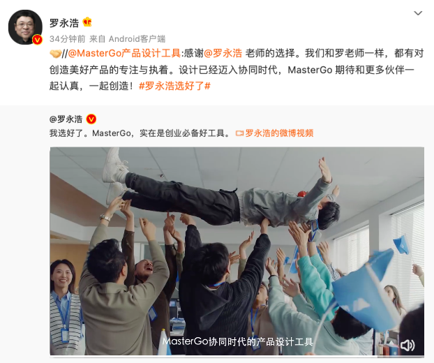 視頻所展現的修改和交付場景也是一樣,羅永浩提出了行業痛點,但也一一給出瞭解決方案,充分講述為什麼自己會選擇與 MasterGo“交個朋友”。定位於協同時代的產品設計工具, MasterGo既能依靠雲端協作與強大的性能優勢實現“一處改,處處改”,⼤幅度提升設計效率,也能讓設計師更加充分地參與到產品研發的全週期中,繼而帶動整個產研團隊的效率提升。
