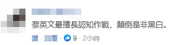 更有網友直斥,“蔡英文最擅長‘認知作戰’,顛倒是非黑白”。↓