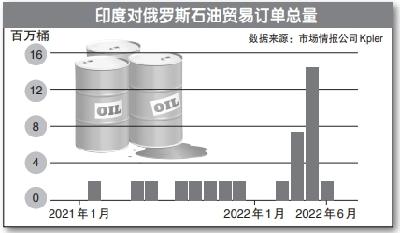 據俄媒體透露,2022年2月底以來,印度國有和私營煉油廠購買的俄石油比2021年全年俄印石油交易量還多20%。目前印度進口商已準備好增加購買量,俄印之間正進行高層談判。如果俄羅斯同意印度的價格要求,印度國有煉油廠每月可以獲得約1500萬桶石油,約佔其總進口量的10%。