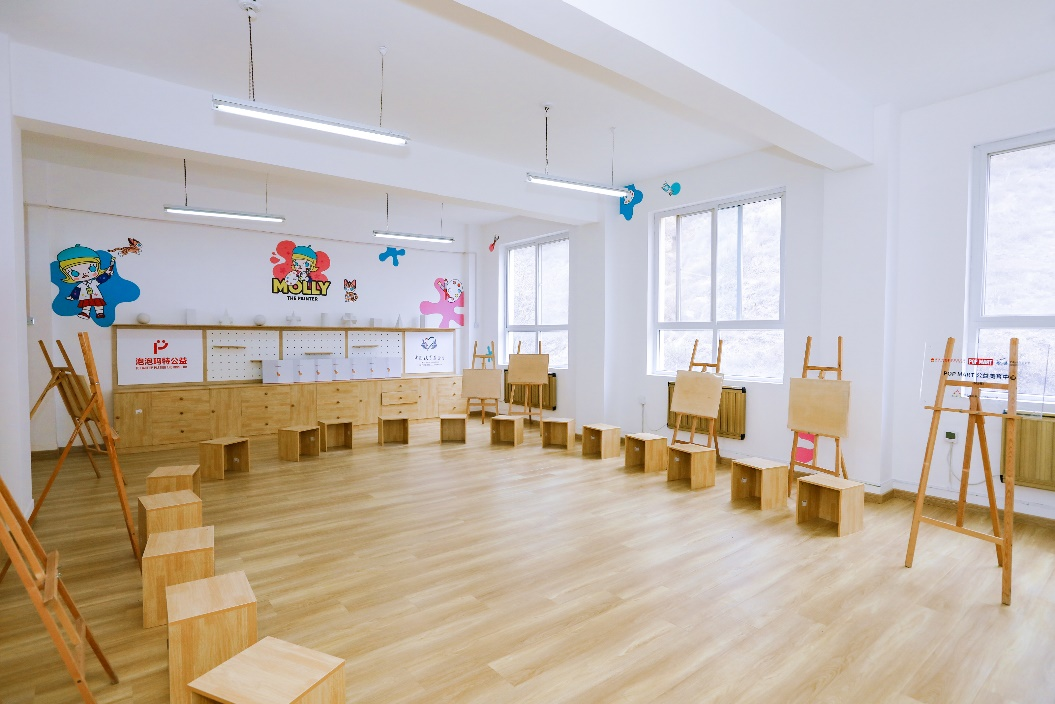 作為一家設計驅動的文創公司,泡泡瑪特充分發揮在美學創意領域的優勢。2021年,公司啓動首個品牌公益項目「POP MART公益美育中心」,首批捐贈36萬元,在甘肅省隴南市禮縣江口鎮中心小學、梁集鎮中心小學建設兩所美育中心,併為隴南市禮縣14所鄉村學校發放美術包裹,通過“硬件+軟件+活動”助力鄉村學校美育教育發展。