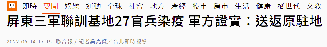 屏東“三軍聯訓基地”27人確診新冠,台軍方證實:送回原駐地