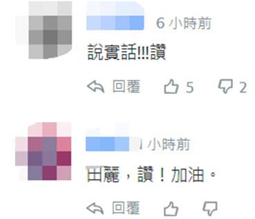 還有網友給田麗加油打氣稱“説實話!贊”“田麗,贊!加油”。↓