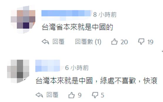 此外,還有一些島內網友在相關報道評論區留言表示,“台灣省本來就是中國的”“台灣本來就是中國(的),綠營不喜歡,快滾” 。