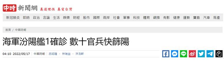 台媒:台海軍艦艇1人確診後數十官兵快篩呈陽性,可能有大批官兵染疫