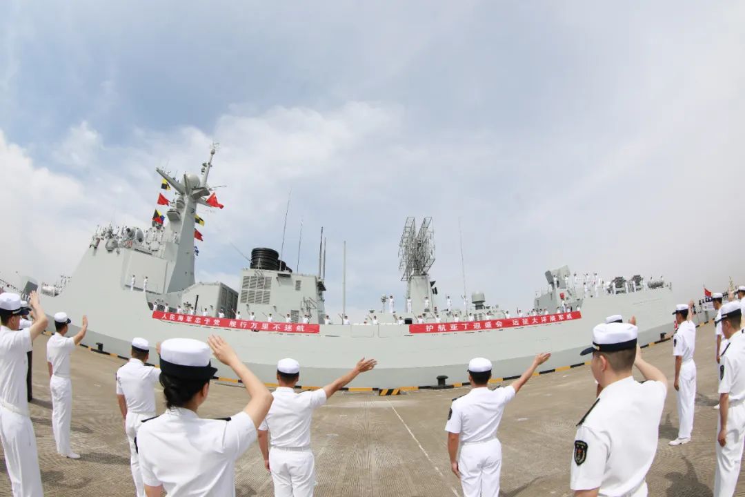 伴隨着嘹亮的軍樂聲,編隊艦艇緩緩駛離碼頭。甲板上,任務官兵精神抖擻、整齊列隊,向祖國和親人揮手道別。在此前舉行的誓師動員大會上,編隊官兵紛紛表示,將時刻把主席號令牢記心中,把祖國利益舉過頭頂,把使命任務扛在肩上,把強軍事業刻進胸膛,堅決完成各項任務,以優異成績向黨的二十大獻禮。