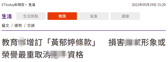 “ETtoday新聞雲”、《自由時報》等多家台媒19日消息稱,針對黃鬱婷穿大陸隊服等言行爭議,台灣“教育部”擬修法增訂“黃鬱婷條款”,規定運動員若損害台灣形象或榮譽,情節重大者將被取消代表隊選手資格,且減少補助金額或停止補助1年至5年。