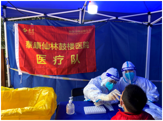 截至5月初,泰康仙林鼓樓醫院累計外派近百名醫護參加隔離觀察點及支援蘇州工作,累計派出超過1800人次前往周邊社區進行核酸採樣200萬例,院內核酸門診合計服務超35萬人次;開通黃碼孕產婦就診綠通,合計接診超50人次,為21名黃碼孕婦順利接生。