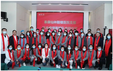 4月7日上午,泰康仙林鼓樓醫院門診大廳舉行了醫療隊出征儀式。醫院派出20人團隊前往南京涉疫地區隔離點為密接隔離人員提供醫療保障,包括15名護士、4名醫生和1名院感專職人員,鄒曉平帶領院領導班子為醫療隊送行。