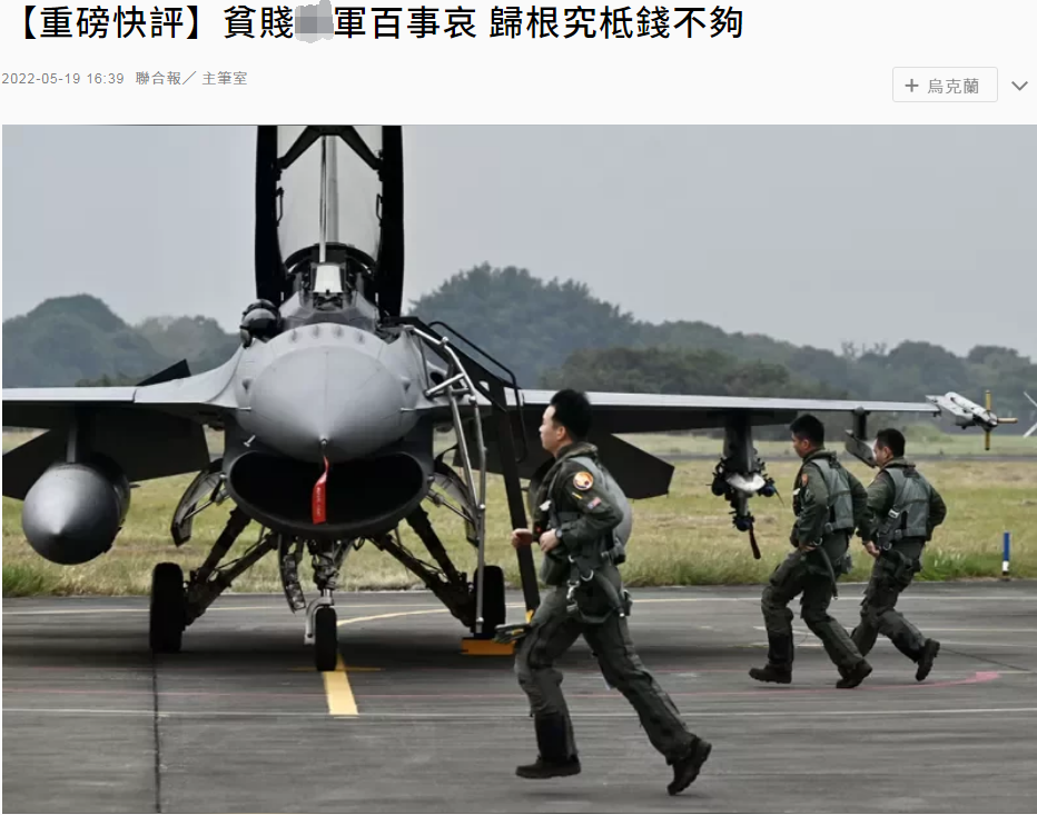 台《聯合報》19日發表評論説,“貧賤台軍百事哀,歸根究底錢不夠”。