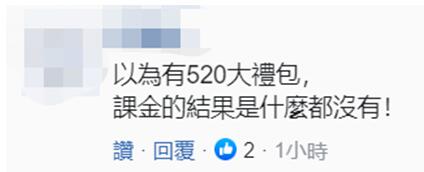 還有網友調侃,“以為有520大禮包,課金的結果是什麼都沒有!”↓