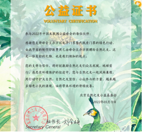 為踐行低碳辦會理念,峯會還聯合騰訊幻核,採用區塊鏈技術結合傳統剪紙藝術的方式,發行了5000張公益數字藏品電子門票,由此節約的辦會成本,已根據換算的碳排放量全額捐給了環保類公益組織。