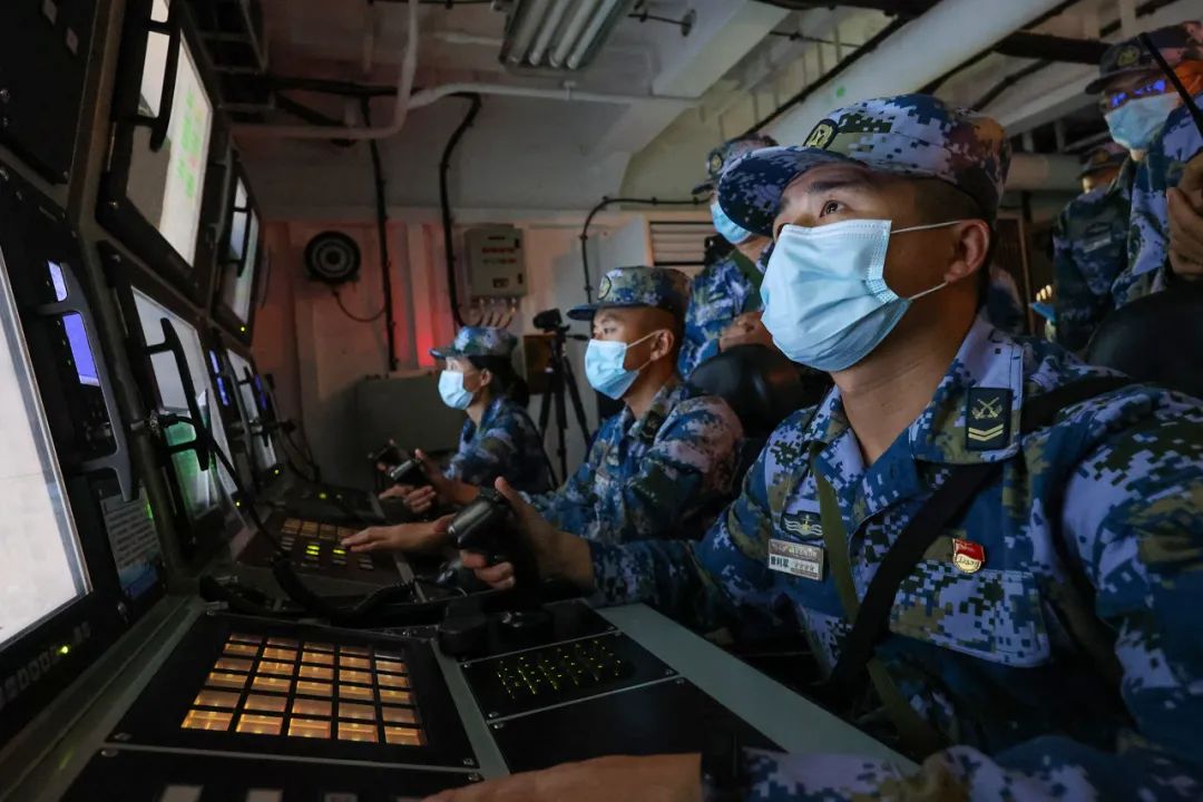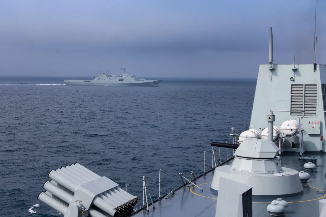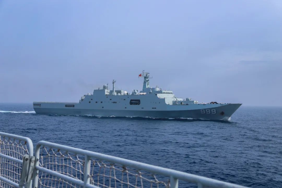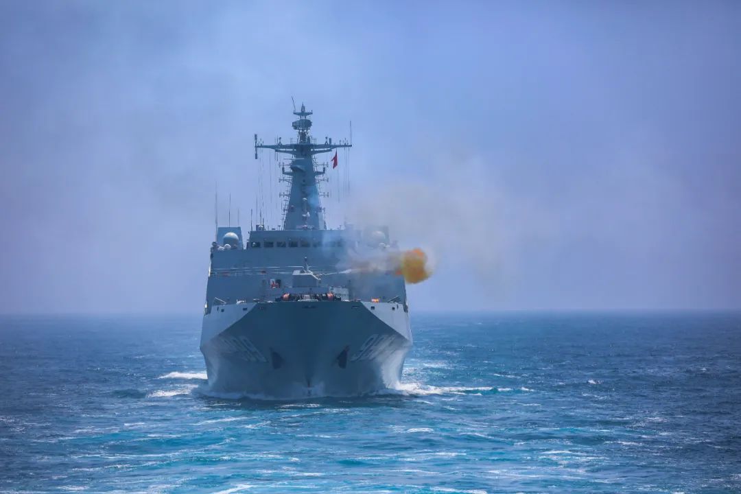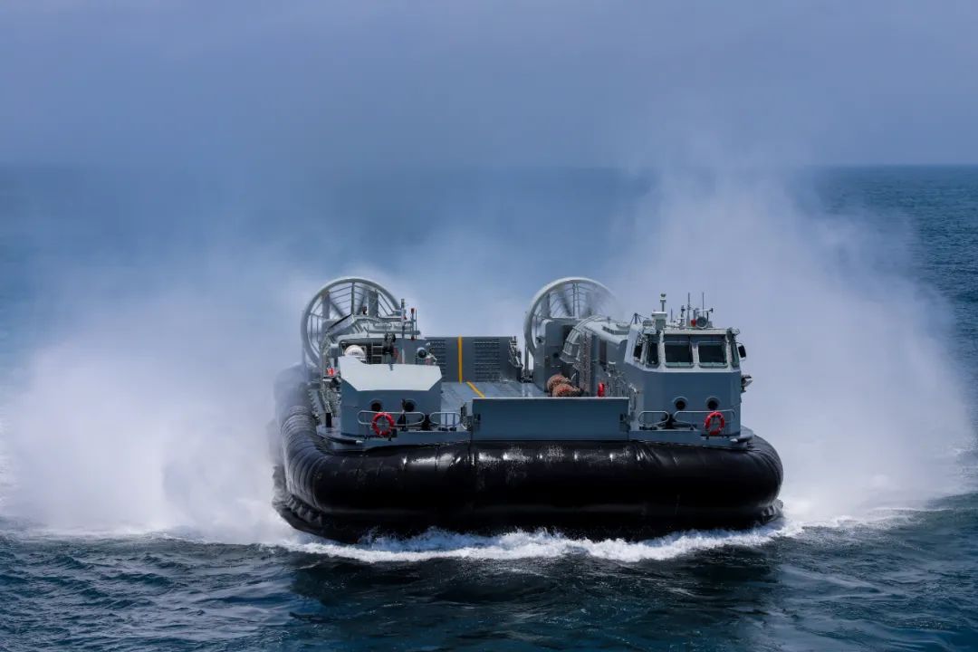 兩艘戰艦塢艙內的氣墊艇有序出塢