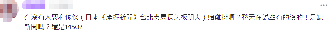 有網友問有沒有人要跟矢板明夫賭雞排:他整天在説些有的沒的!是缺新聞嗎?還是1450?↓
