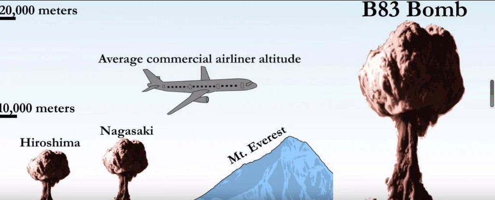 B83核炸彈爆炸的蘑菇雲遠高於二戰期間使用的那兩枚原子彈