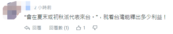 還有網友認為,“會在夏末或初秋派代表來台,就看台灣能釋出多少利益!”↓