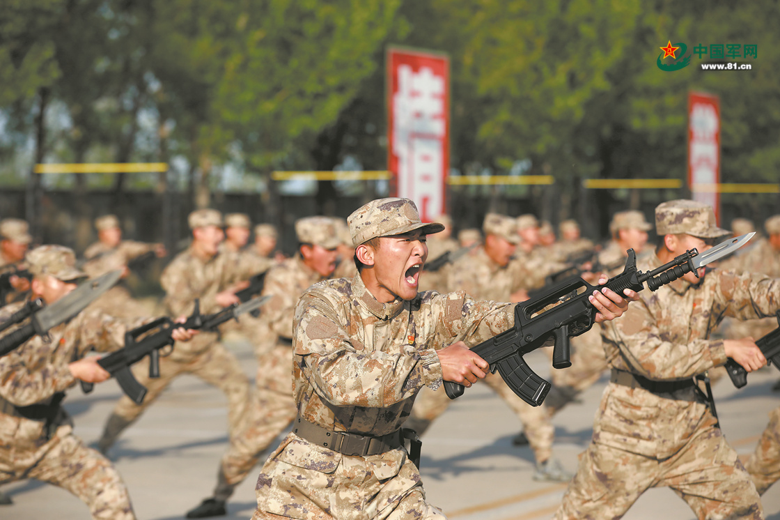 刺殺課目訓練中,新兵黨員鬥志昂揚。