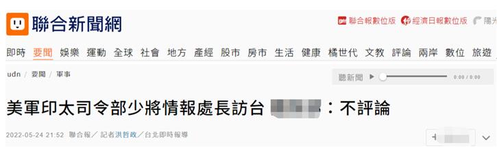 台媒:英媒爆美印太司令部情報處長近期曾訪台,台軍方稱“不評論”