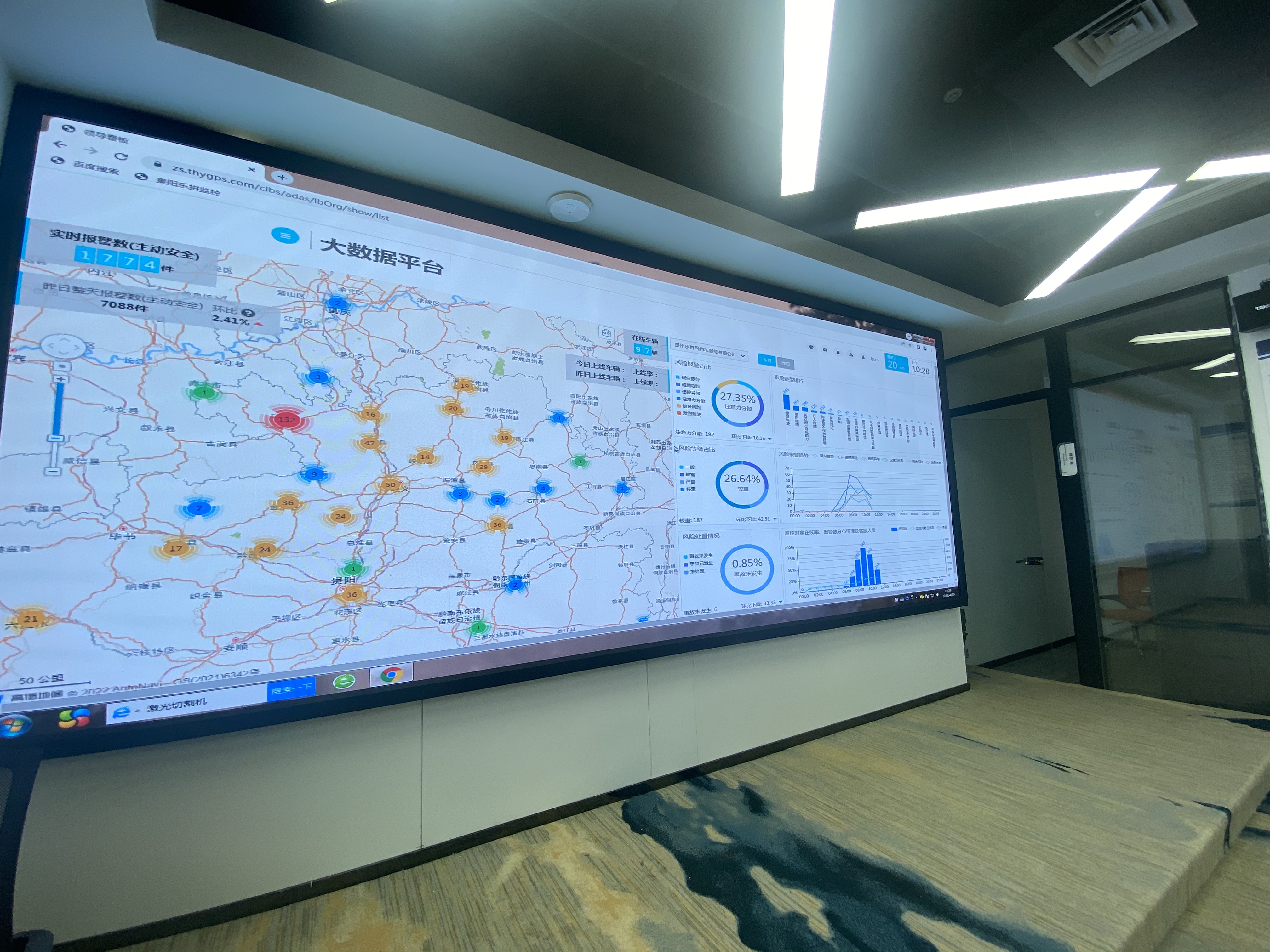 目光換至貴陽樂拼網約車服務有限公司內的一塊大屏幕裏,大數據平台正在即時監控司機駕駛過程中的行為,對駕駛過程中司機出現的打哈欠、打電話等疲勞和危險行為及時進行風險預警提示,全程確保車乘人員的出行安全。“通過大數據平台的分析,我們還可以對行駛軌跡即時查看,進而規避司乘繞路糾紛。”王成宣表示,公司內還為廣大平台司機建立了專門的休息驛站,“沙發、熱水、方便麪……大家有需要就使用,希望讓司機真正感受到我們的服務和用心,希望大家能感受到來自貴陽樂拼這個大家庭的温暖。”
