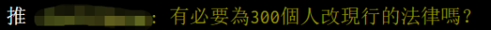 還有人稱,“有必要為300個人改現行的‘法律’嗎”。