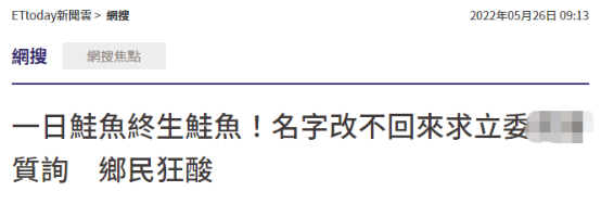 有網友將新聞轉發到島內論壇PTT,引起網民嘲諷,“一日鮭魚終生鮭魚”、“愛當鮭魚就讓他當一輩子啊”、“讓這名字跟着一輩子”。
