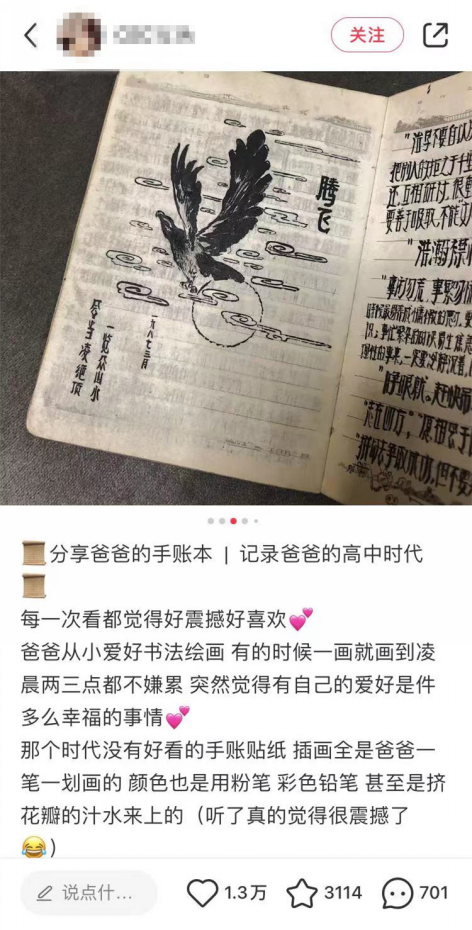 有網友曬出過爸爸的手賬,