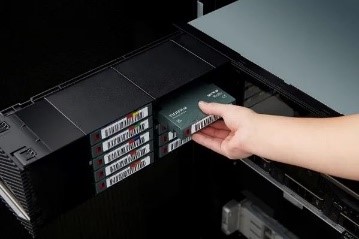 其中,LTO9數據流磁帶採用富士膠片鋇鐵氧體BaFe專利技術,優化了數據存儲單位密度,達到單盤18TB、壓縮後45TB的容量空間;在傳輸速率方面,分別在壓縮前和壓縮後達到了400MB/秒和1,000MB/秒的高速數據傳輸,具有很高的便利性。此外,磁帶存儲還能夠對關鍵數據進行離線保存。值得一提的是,與硬盤驅動器(HDD)相比,磁帶可以減少95%在數據保管中產生的碳排放量和80%電子垃圾,並降低73%的總擁有成本。