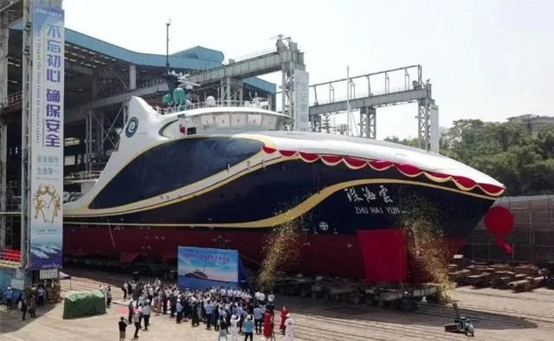 “珠海雲”號的性能數據也非常透明:它全長88.5米,型寬14.0米,型深6.1米,設計吃水3.7米,最大航速18節,經濟航速為13節,設計排水量約2000噸。據介紹,它的起居甲板以上的船體均採用鋁合金建造,線型複雜、加工難度大,為了確保船舶建造質量和外觀的流線型,研發建造團隊破解鋁合金焊接、造型等工藝技術難題,完美實現了船體的“未來感”和“高顏值”。